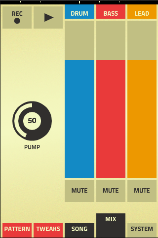 My favorite part: A “pump” dial. Why hasn’t anyone thought of this yet? This dial is hard-set to sidechain compress the synth tracks to the kick drum, which is how sidechains are set up 99% of the time. It usually takes some time to setup a good side chain. What a concept to just include this on the master track along with the levels!